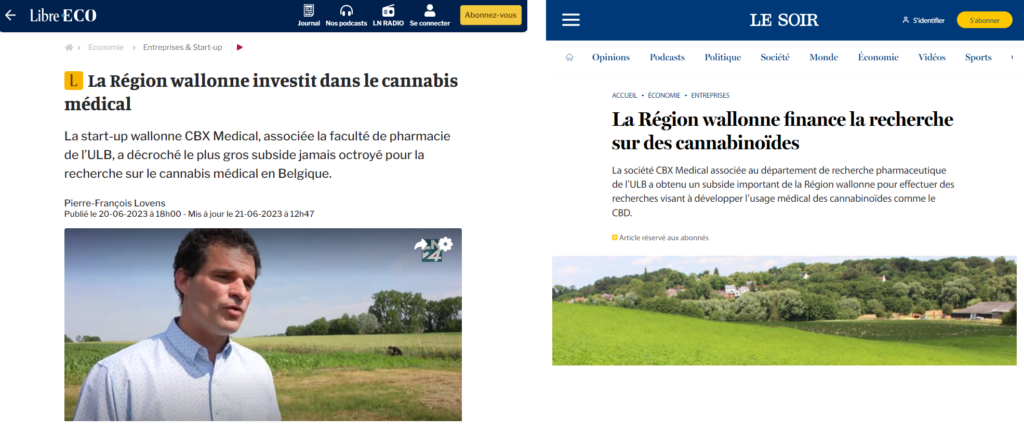 • En 2023, le Service Public de Wallonie (SPW) a octroyé un subside de 573.500€ à la startup belge CBX Medical spécialisée dans le développement et la distribution de solutions de santé